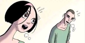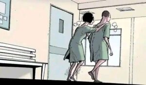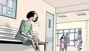 At first she’s overjoyed. She runs through the hospital corridors, laughing and dragging the bewildered nurses around. The couple is “reunited”; they hold hands, smile, and behave like nothing ever happened.