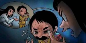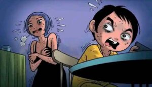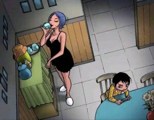 Eventually the boy can’t take it anymore and tries to run away or fight back, but he’s too small and exhausted. In the final pages we see the truth: the “stepmother” is actually the vengeful spirit of the boy’s real mother. Years ago, the father and his new girlfriend got rid of the original wife so they could be together. The real mother came back as a ghost, slowly tormenting and destroying the replacement family from the inside. The drinks she kept offering weren’t meant to harm the boy; they were meant to make the stepmother suffer the same fate she once did.
